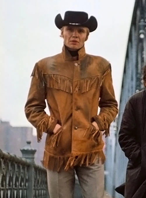 Transport yourself back to the golden era of cinema with our Joe Buck Cowboy Leather Jacket, inspired by the 1969 classic Midnight Cowboy. This movie, remembered for its powerful storytelling and standout fashion, introduced unforgettable style elements—like Joe Buck’s iconic brown cowboy jacket, worn by Jon Voight. Whether you're attending a costume party, dressing casually with a vintage twist, or simply appreciate timeless fashion, this brown leather jacket is the perfect choice.