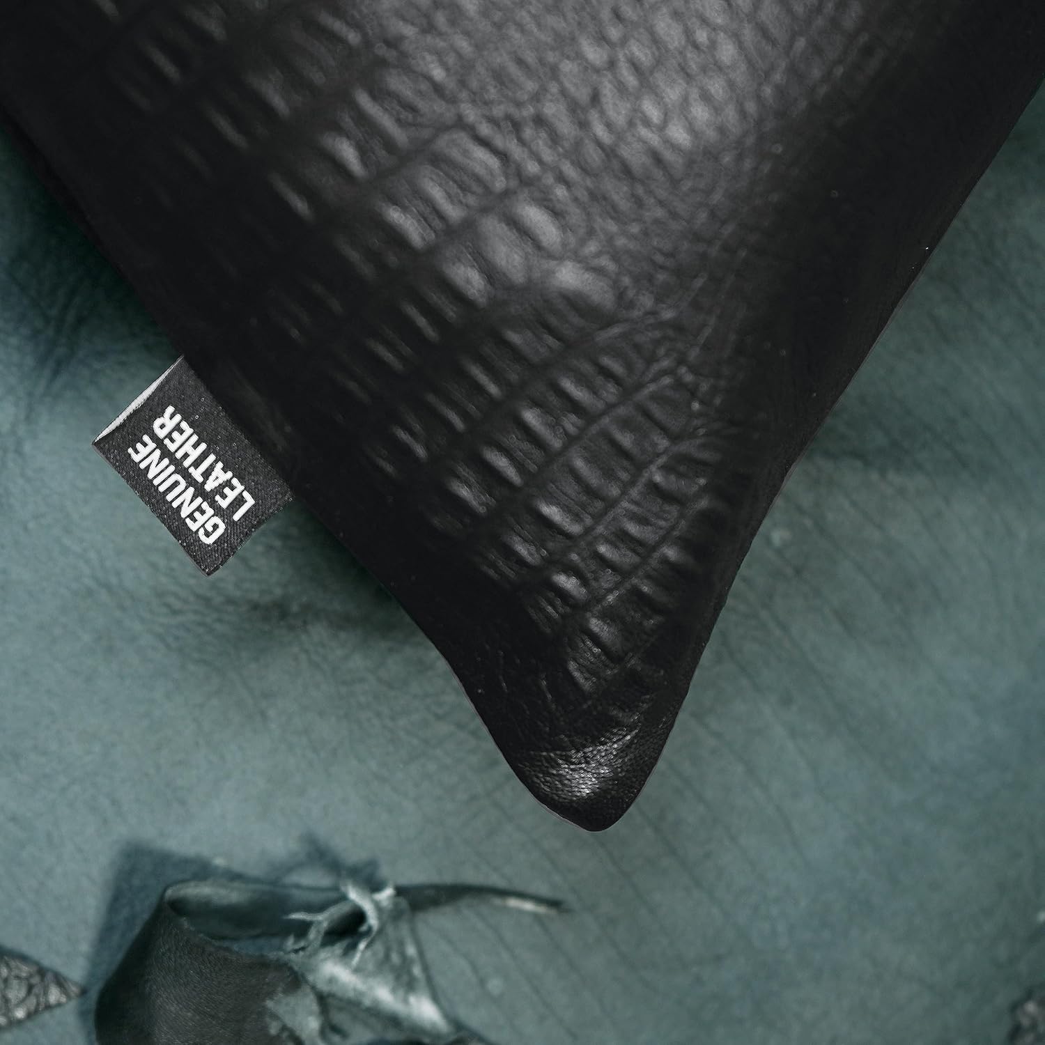 Transform your living space with the QAWACH Black Croc Pattern Genuine Leather Pillow Cover. Made from premium genuine leather, this pillow cover brings a touch of luxury and sophistication to any room. The unique crocodile pattern adds a bold, textured look, while the sleek black color easily complements various interior styles, from modern to traditional.