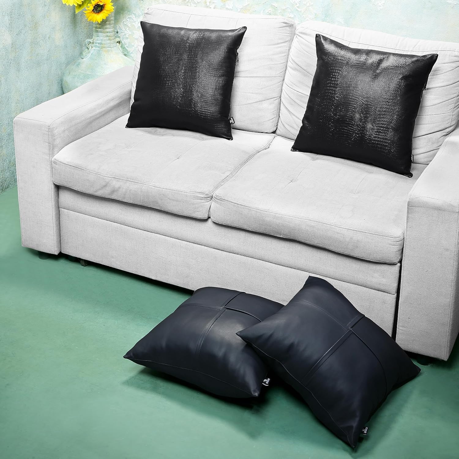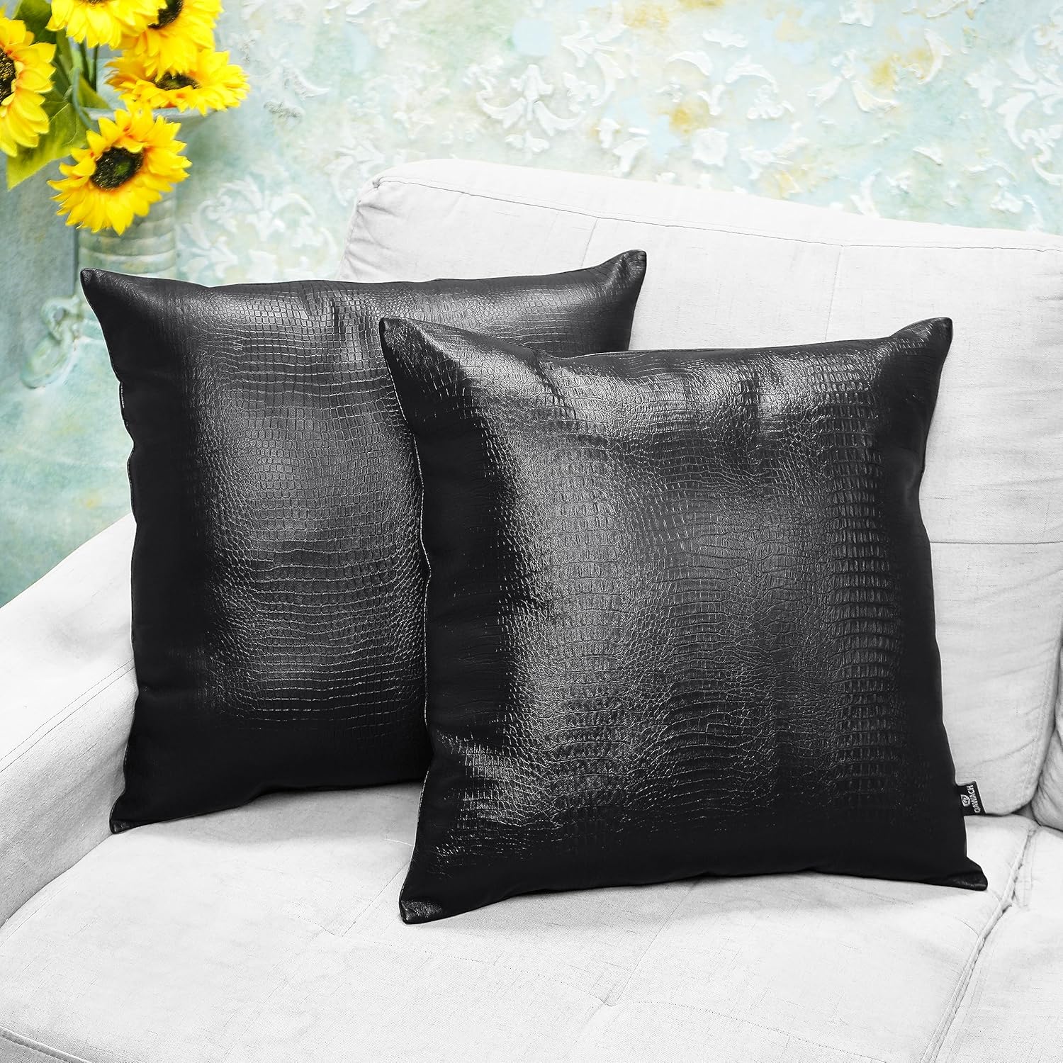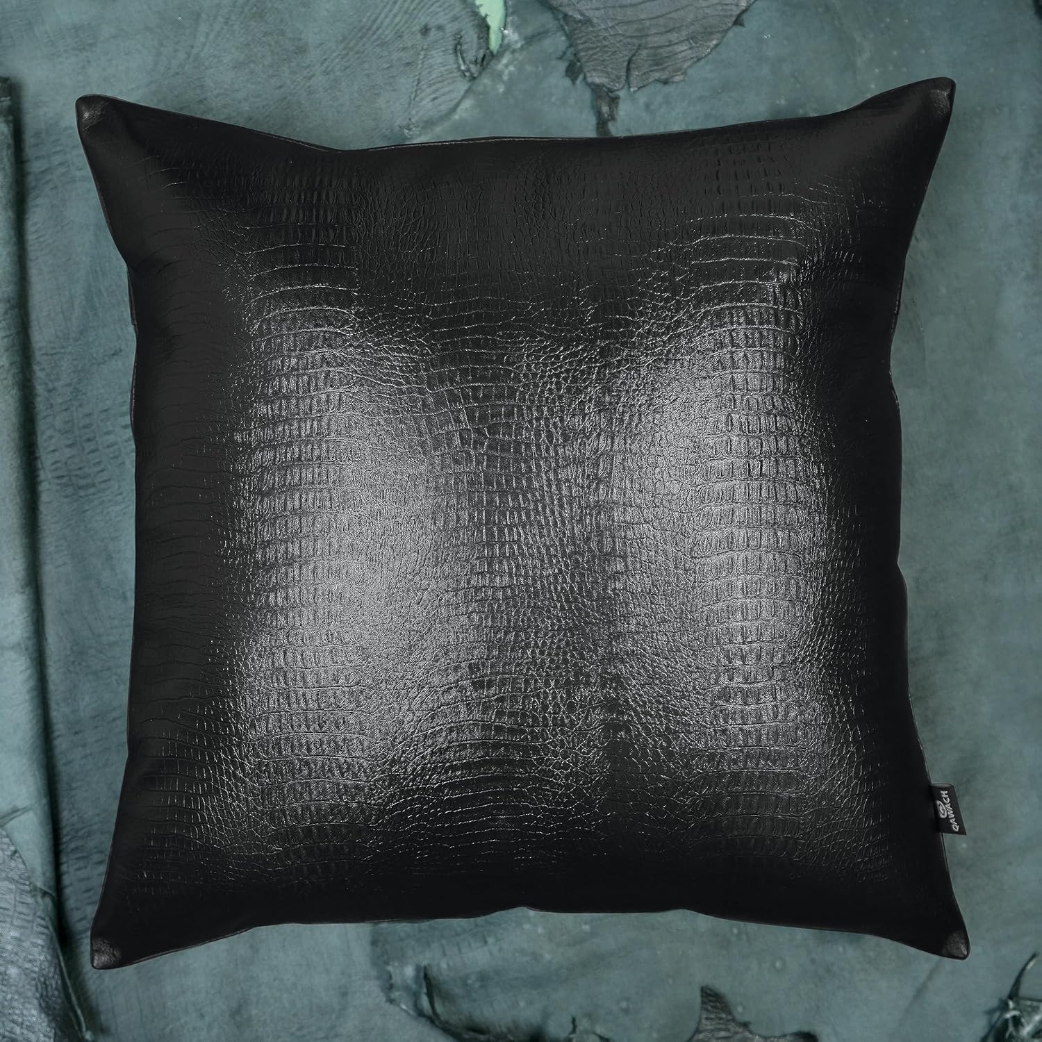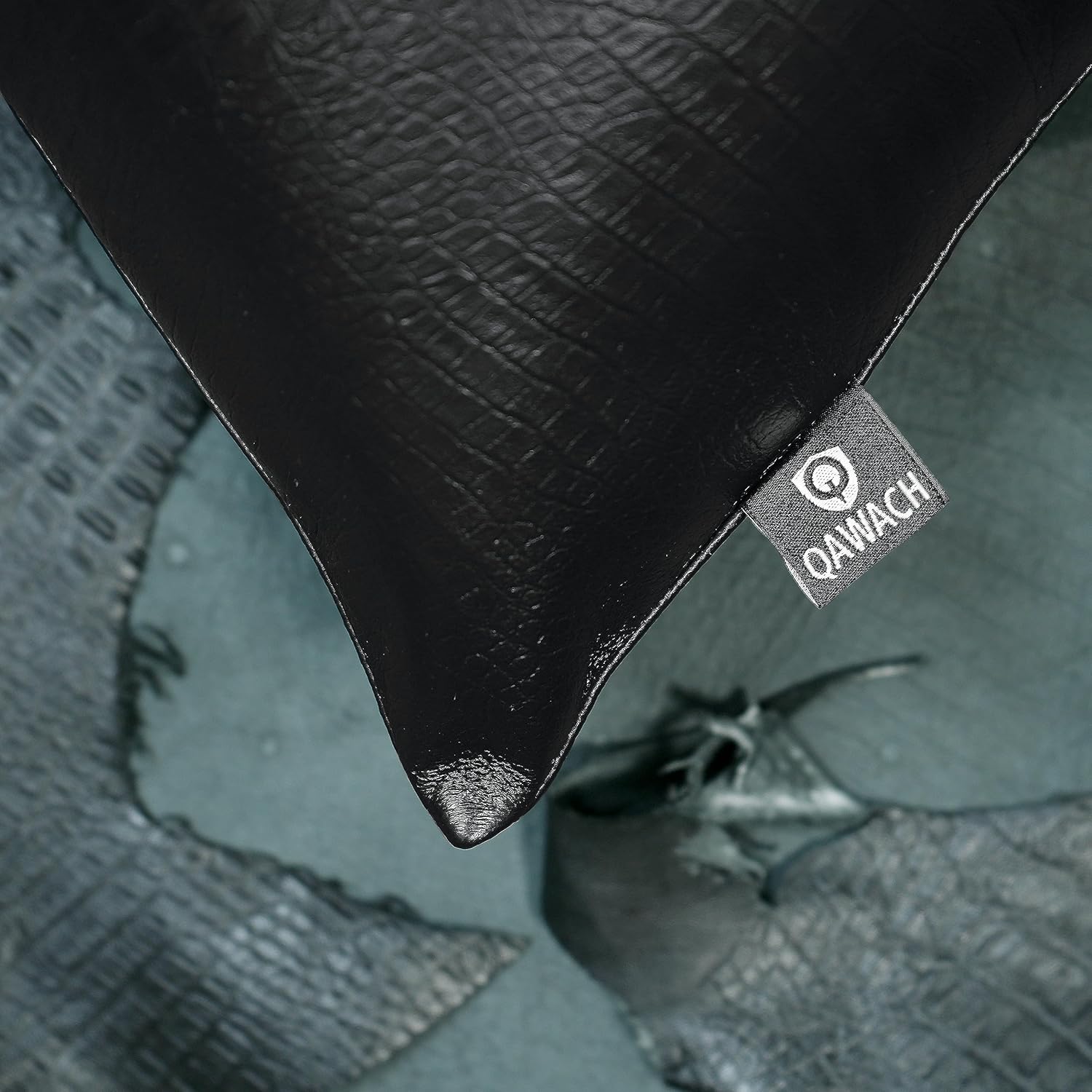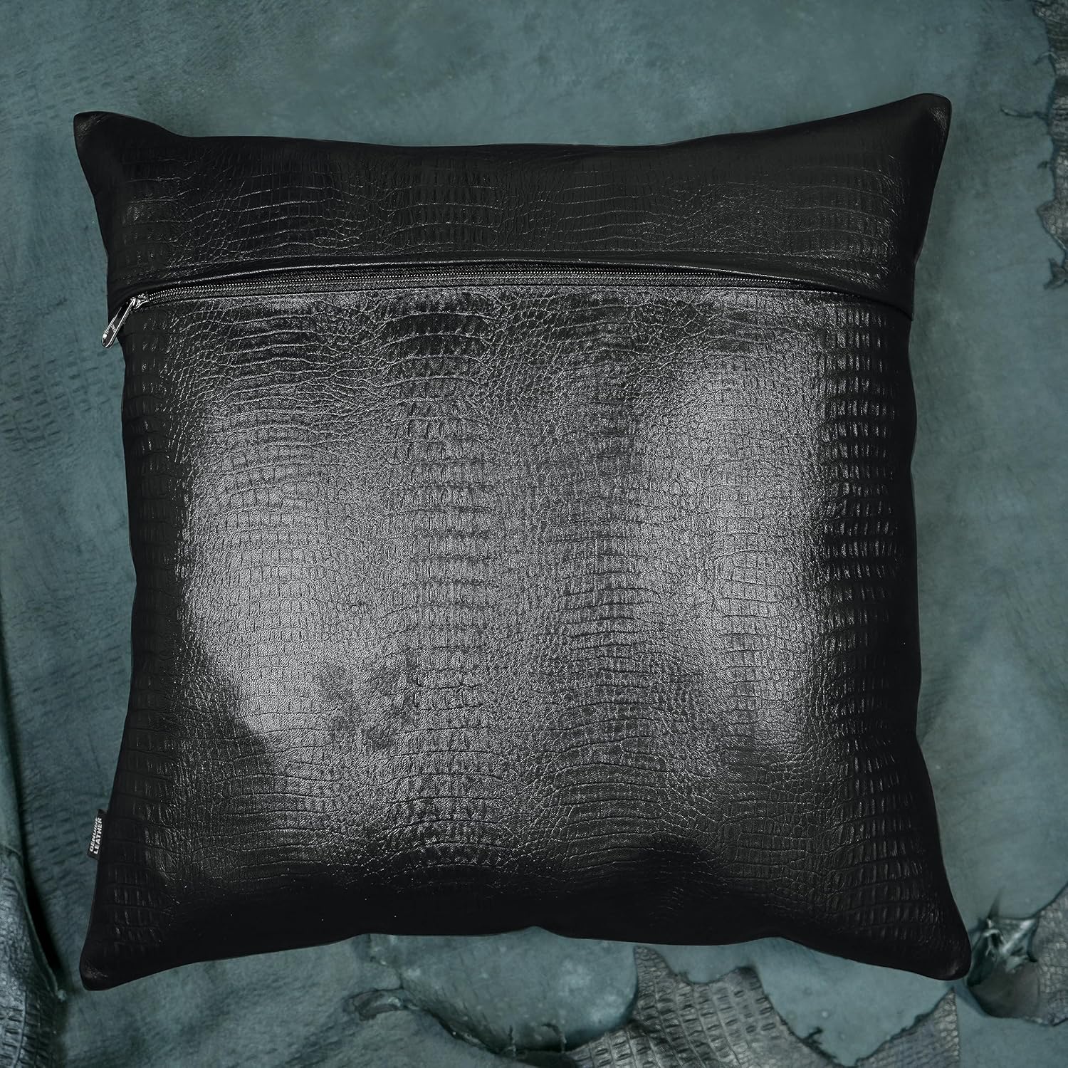 QAWACH Black Croc Pattern Genuine Leather Pillow Cover