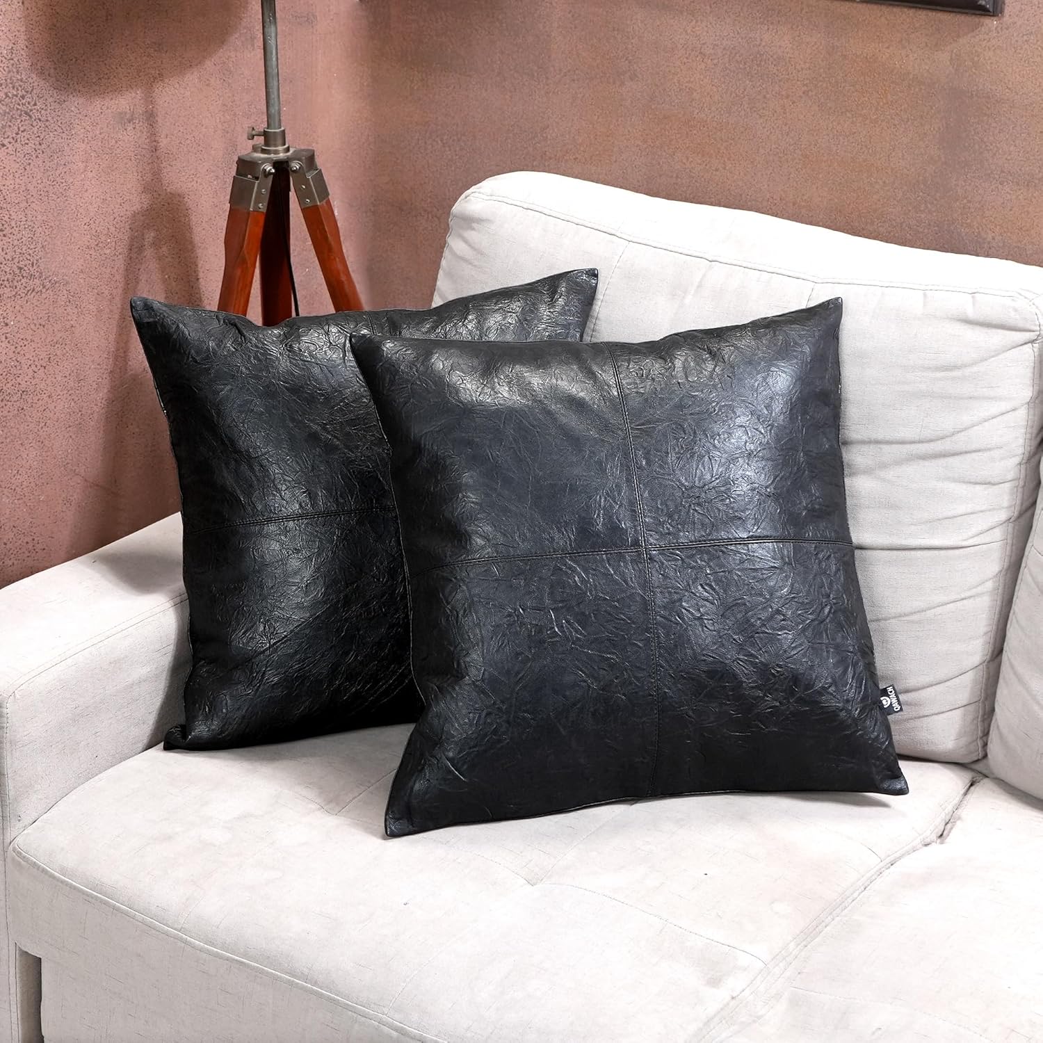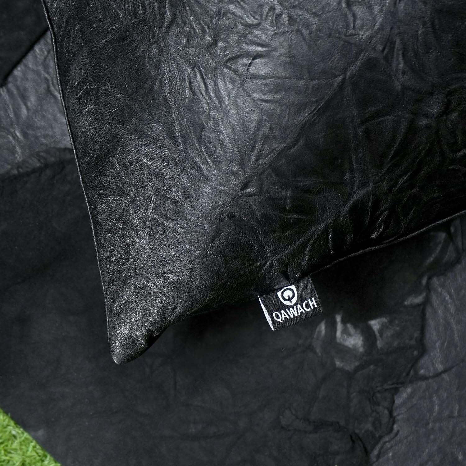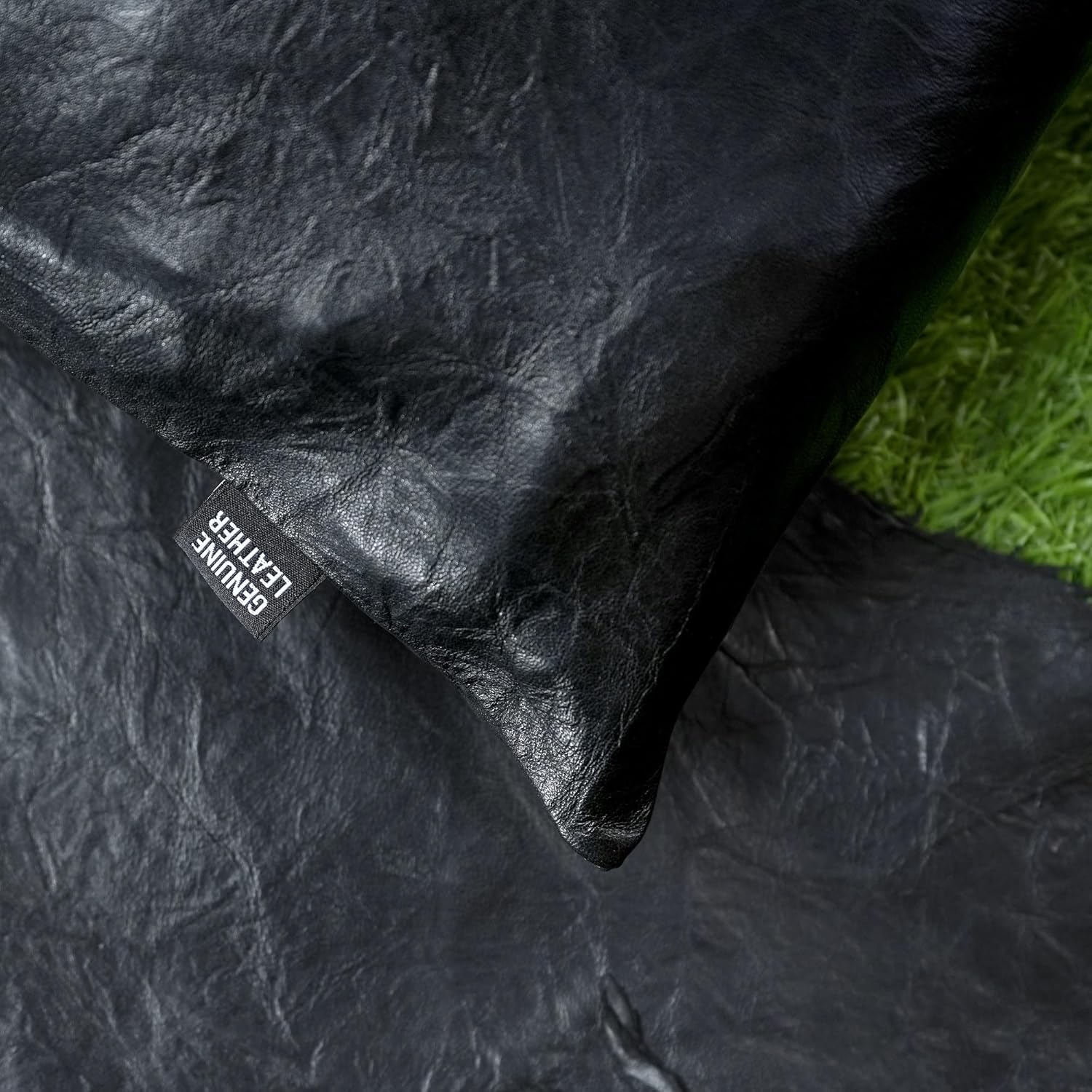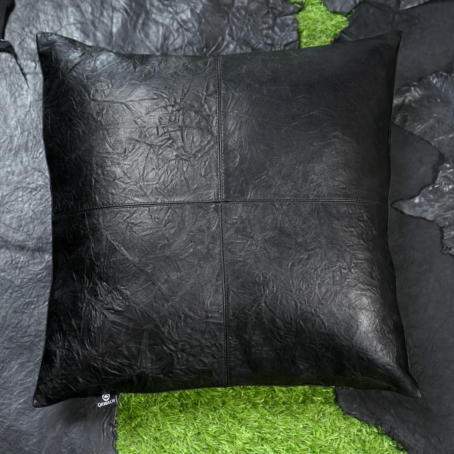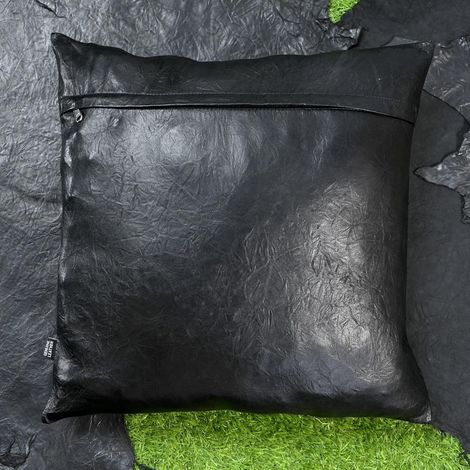 QAWACH Black Crunch Plain Genuine Leather Pillow Cover